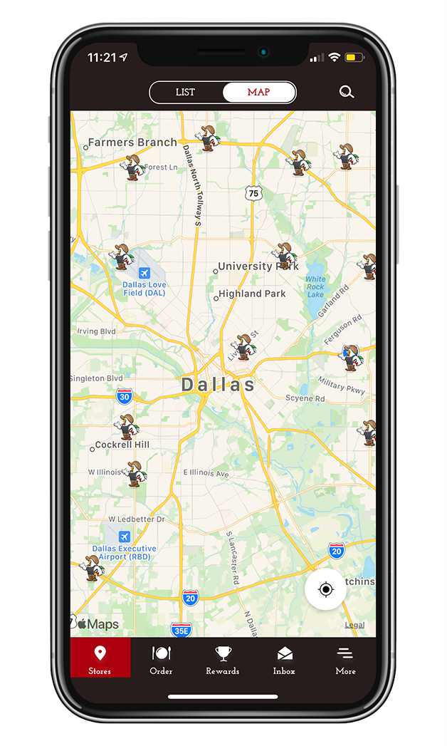 Ordene en la app para recoger, curbside, o entrega. Gane puntos de pedidos realizados a través del app.